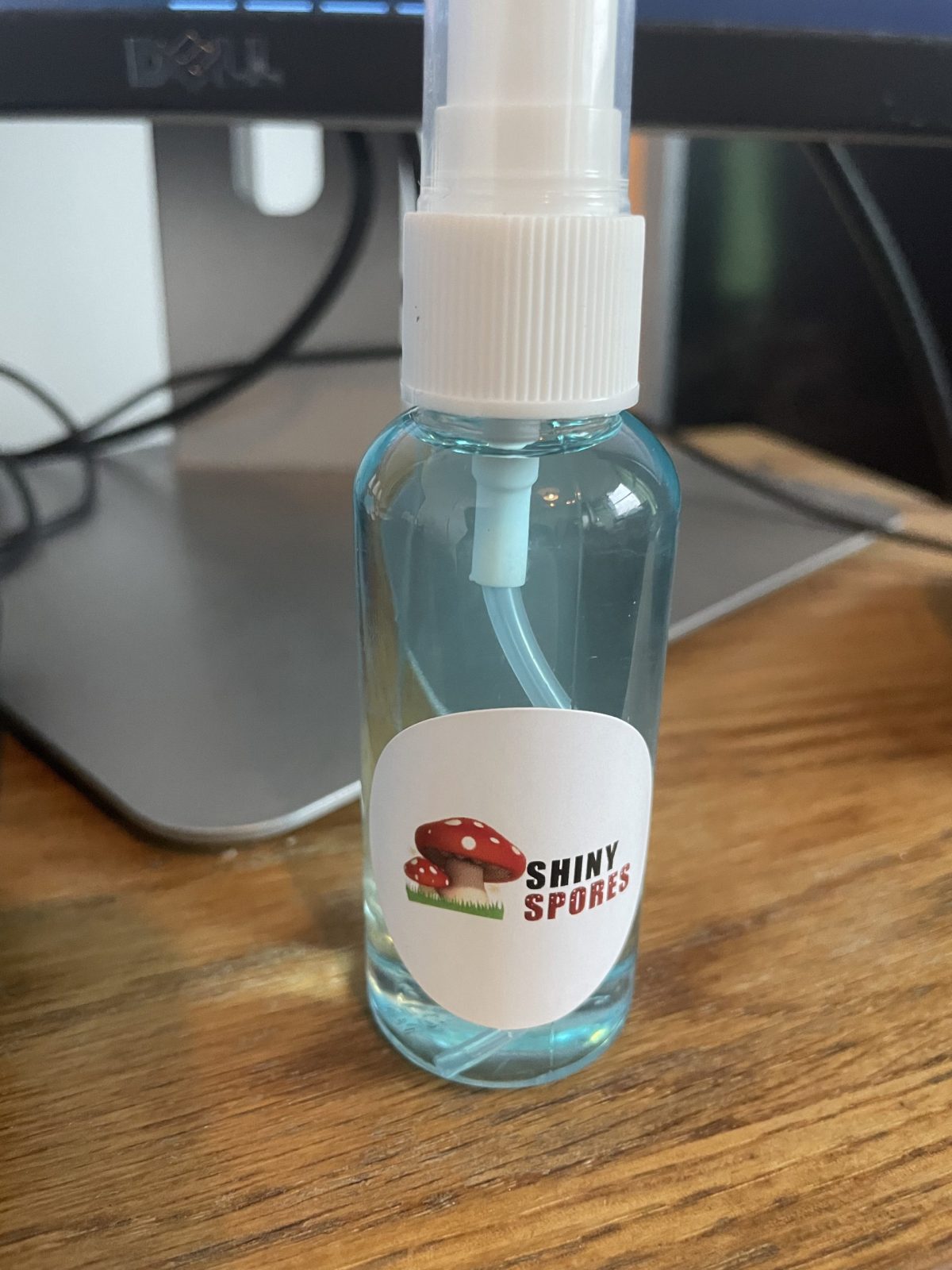 This is the best sanitizer to use for mushroom cultivation. 50ml spray bottle of 70% ISO alcohol and 30% deionized water.